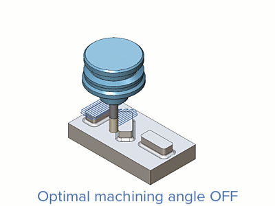 平坦部加工に、もともと走査線(Pro)で導入されていた強力なツールパス拡張機能である”最適な加工角度”が追加されました。この機能は、平行パスを各加工領域の最長寸法にインテリジェントに整列させ、切削方向を最適化して効率と加工面の品質を向上させます。異なる領域で独立した角度調整を可能にすることで、材料除去を最大化し、エアカットを最小化することで、複雑な形状の平らなフィーチャーに適した角度で高速な加工をもたらします